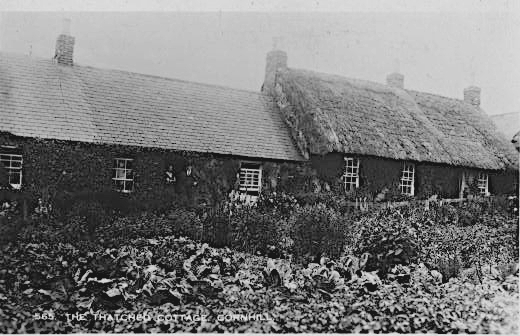 Row of Cottages, courtesy of Graham Dennis Graham thinks the cottage on the right is the mystery thatched cottage shown above.